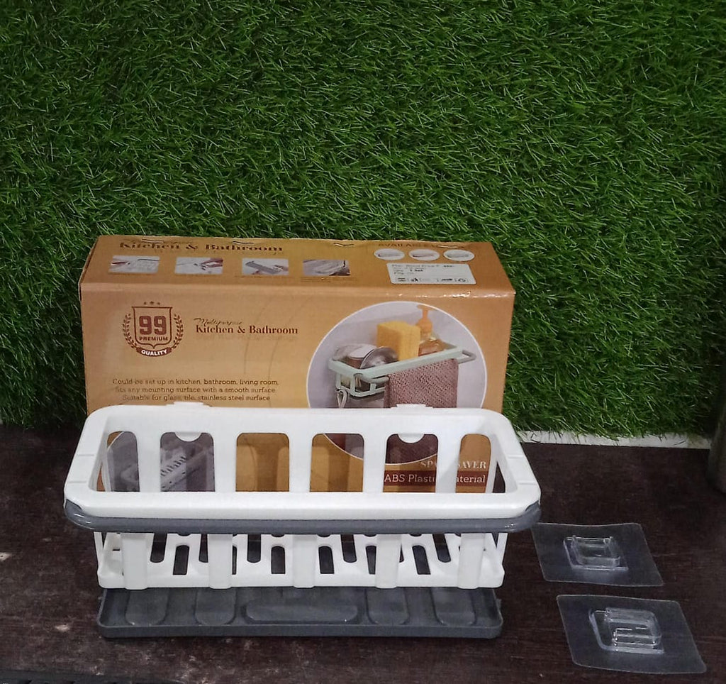 8788 Multipurpose Platic Hanging Drain Rack Retractable Sponge Storage Hanging Rack With Adhesive Hook for Kitchen and Bathroom Dishcloth Holders Basket Drying Tray Organizer